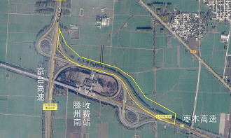 黄框内部的匝道目前封闭施工,车辆需在滕州南收费站外广场绕行后再驶入京台高速。 本报记者 袁鹏 制图