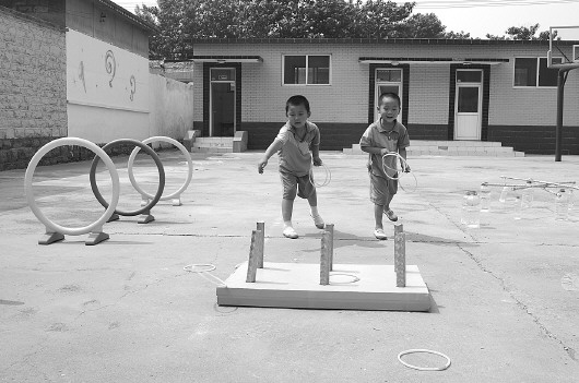 孩子们在幼儿园玩耍。 本报记者 王光营 摄