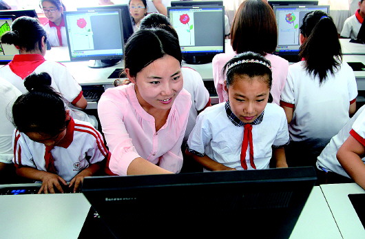 玫琳凯公益活动——学生在玫琳凯捐建的电脑教室学习计算机。