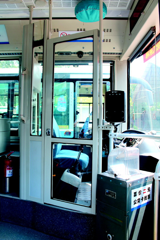 公交车装上了隔离驾驶室。 记者 孟燕 摄