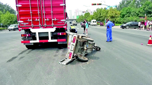 本报96706热线消息(记者 张泰来) 15日上午,经十东路发生一起交通事故,一辆大货车与一辆电动三轮车在路口相撞,致使三轮车上乘坐的4岁女孩当场身亡,三轮车骑车人受轻伤。