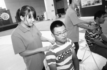 本报8月16日讯(记者 张琪 蒋大伟) 生活带给了赵银利很多不幸,但却没有将她击垮,她反而用坚强的意志克服了一切困难。在志交会现场,来自滨州医学院中医学针灸推拿专业的视障学生赵银利赢得了人们的尊敬。