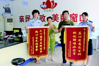 8月13日,王女士和老公各拿一面锦旗来到夏津县公安局城关派出所户籍室,对民警为其找到失联已久的亲人并办理了户口表示感谢。