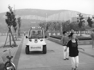 近日,针对辖区居民早起晨练家中无人和锻炼时容易忽视放在一边的财物的情况,峄城公安鹭鸣山庄社区警务室实行错时工作制,在每天早上5点到6点半开展错时巡逻,增加了见警率,也获得了群众的好评。 本报通讯员 杨明 李剑 本报记者 袁鹏 摄影报道