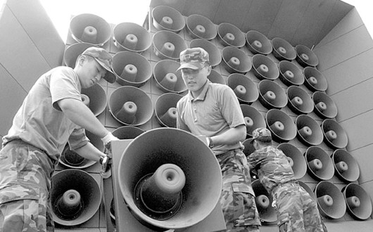 这是两国时隔11年后再次使用扩音器互相喊话。按照朝韩军方2004年6月达成的协议,韩军中断使用扩音器对朝喊话,并拆除相关设备。