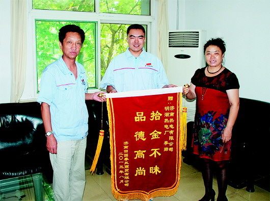 本报讯(记者 王倩 通讯员 张宁) “真没想到银行卡还能找回来,特别感谢李帅师傅。”8月14日下午,失主王女士带着锦旗来到济南热电有限公司明湖厂,表达对拾金不昧的热电职工李帅的感激之情。
