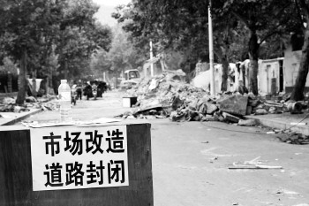 红星农贸市场改造升级,马路市场被封闭。本报记者 高雯 摄