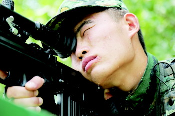 狙击手训练,战士汗如雨下却浑然不觉。