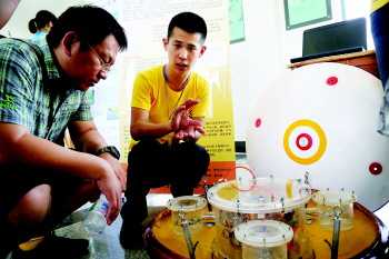 “这是我们的第二代产品,最大特点就是不需要专门的动力助推,而是利用自身的浮力调节系统动态地调节自身浮力,实现正浮力和负浮力之间的状态转换,为载体提供上浮。”来自青岛科技大学机电学院船舶专业的大学生告诉记者,此外,此滑翔机以海水水温温差提供能量,不需要自带能源,航行距离远。