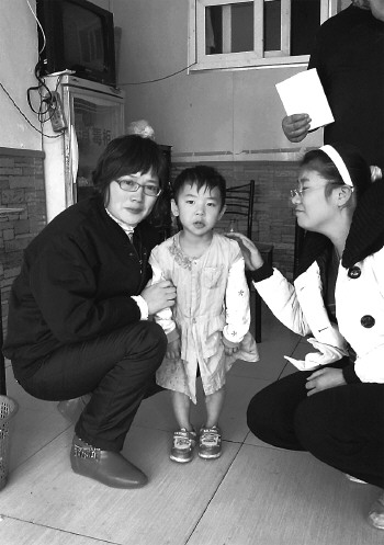 俞城电子的工作人员走进贫困家庭。 受访者供图