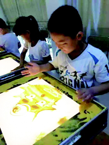 “学习沙画可以通过孩子双手配合作画,锻炼孩子的左右脑协调能力,促进大脑全面发育。”中心老师刘佳说,发展孩子的想像力和创造力,学习沙画可以舒缓孩子的学习压力,让孩子更加活泼开朗,锻炼孩子意志力和自制力,使孩子更加积极健康地成长。