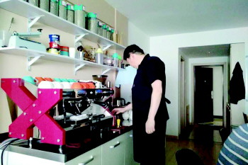 爱尚咖啡的崔先生正准备冲咖啡。(资料片)