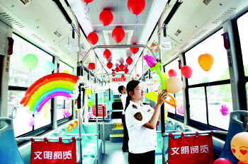 20日是七夕节,18日上午,温馨巴士工作人员在31路公交车上用气球打造出绚丽多彩的爱情巴士,在七夕节当天为岛城单身男女们提供相亲活动的场所。相亲活动将于20日下午2点在31路终点站天泰体育场开始。