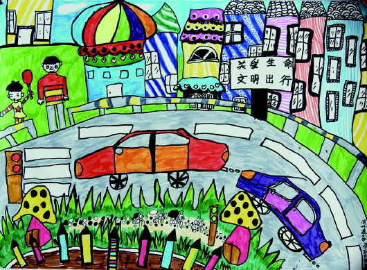 ▲张晋铭 逸夫小学 《关爱生命文明出行》