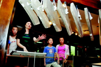 孩子们认真听讲解员的讲解。 本报记者 王鸿哲 摄