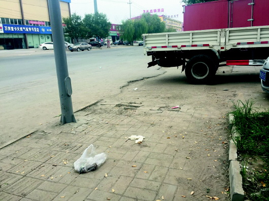 男子死亡的位置在人行道上。 本报记者 时培磊 摄