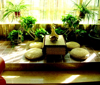 在形式设计上,首先,要充分考虑原建筑的采光情况,不要破坏了原建筑良好的采光性。其次,要考虑阳台的荷载能力,做景观可能用到假山、水池等装置,所以一定要详细了解楼盘的承重情况再进行设计。第三要注意防水,很多人喜欢在阳台上砌水池养鱼,一定要规范施工,用质量好的防水材料,一般防水层要有5毫米厚。最后选择植物不要贪多,植物一般都容易惹蚊虫,如果种得太多则很容易让阳台变成寄生虫的乐园。