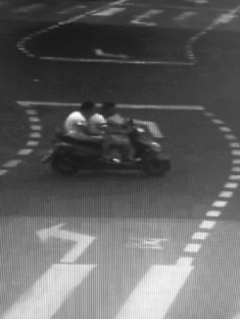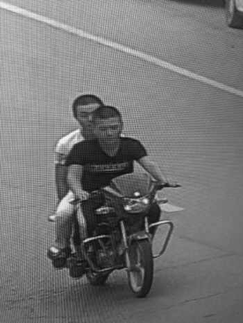视频监控中可以比较清晰地看到,两名犯罪嫌疑人骑乘摩托车。