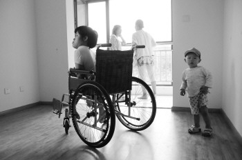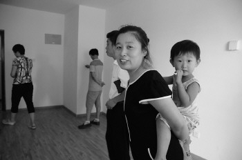 在10号楼楼下,刚看完房的王岗一家人热烈地讨论着房源的情况。王岗今年34岁,由于腿部有些残疾,没有工作,妻子也靠给人打零工赚点零花钱,再加上低保补助,夫妻俩勉强过生活。三年前,他们有了一个可爱的女儿,如今,一家老小五口蜗居在王岗父母不到60平米的小屋子里。