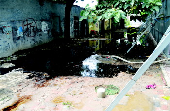 上午11时,各路队员第一时间赶到事发地点。地表有三处渗油点正不断往外渗透原油,这说明输油管道已经发生破裂,整个下水道也已经蓄满原油。大量原油在重压之下涌入地表,空气中弥漫着呛人的气味。