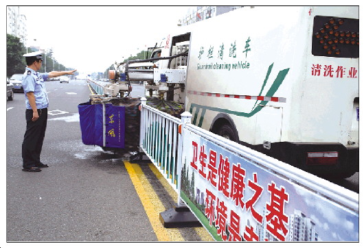 随着国家卫生城市复审的日趋临近,莱芜交警支队全力服务创城迎审工作,在做好城区交通秩序专项综合整治的同时,自8月14日开始,从外地引进护栏清洗车,以鲁中大街、文化路等“四纵五横”主城区道路为重点,加班加点,对市区40多公里中央隔离护栏的进行全面清洗、保养和维护,以确保交通护栏的规范、整洁、美观,充分发挥安全防护作用。