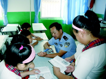 派出所民警进校园给孩子讲安全知识。(资料片)