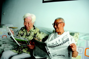 现在,两位老人还能时常看看报纸、写写毛笔字,有时一起携手出去散步遛弯,至今两位老人还是出去买菜自己做饭、包饺子,膝下的一个儿子和两个女儿也很孝顺。对于未来,两个老人说,还是希望能有健康的身体,一起走到老,也不枉此生。