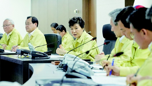 20日,韩国总统朴槿惠(中)在首尔主持召开紧急国家安全保障会议。 新华/法新