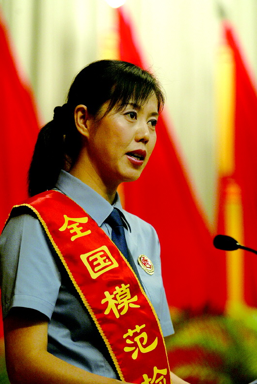 全国模范检察官、全省第二届道德模范孟红伟在全国模范检察官表彰大会上作事迹报告(资料片)。