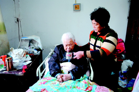胡光云照顾瘫痪在床的老母亲(资料片)。