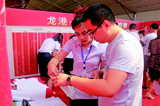 精彩的节目后,激动人心的选房活动正式开始,客户按照交钱先后顺序依次进入选房区选房,不时在讨论究竟选哪个楼层,现场相当火爆。