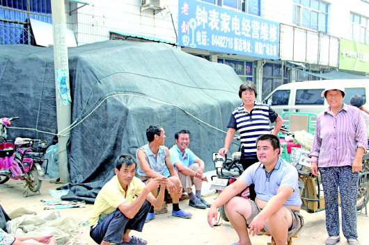 ◥劳务队队员在街头等“活儿”。 安乐 摄
