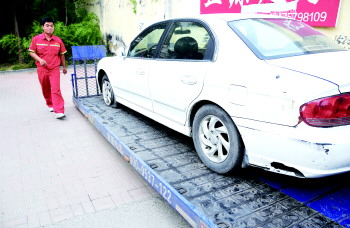 “僵尸车”被拖走。本报记者 李岩松 摄