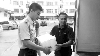 19日,曲阜九龙饮料品有限公司“尼山清泉”济宁办事处工作人员给武警战士送清凉,在济宁公安消防支队市中大队,给他们送来了70箱尼山清泉饮用水,“消防战士为了人民生命财产安全奋战在最前线,他们是最尊敬的人。”办事处经理徐艺谋说。 本报记者 苏洪印 摄