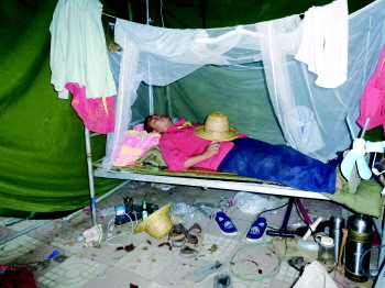 劳累了一天的徐利在临时搭建的工棚内休息。