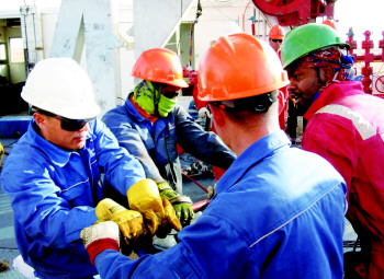胜利海洋钻井员工进入沙特市场参与施工。 通讯员 王为 提供