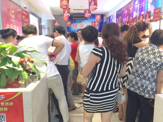 七夕当天,一家金店内挤满了前来选购的市民。 本报记者 刘婷婷 摄