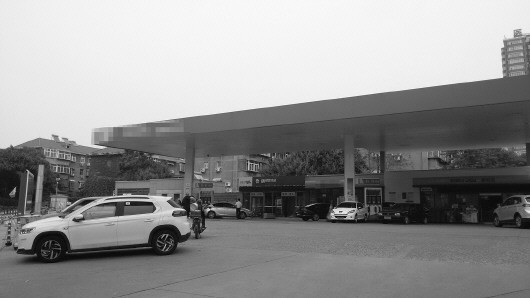 省城经十路一处加油站,东北两侧与居民区相邻。 本报记者 刘德峰 摄