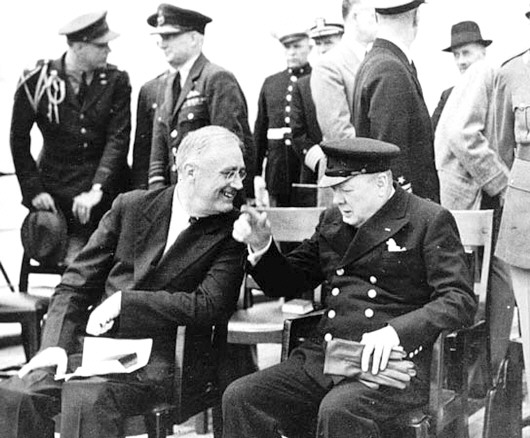 1941年8月,罗斯福(左)与丘吉尔签署《大西洋宪章》。