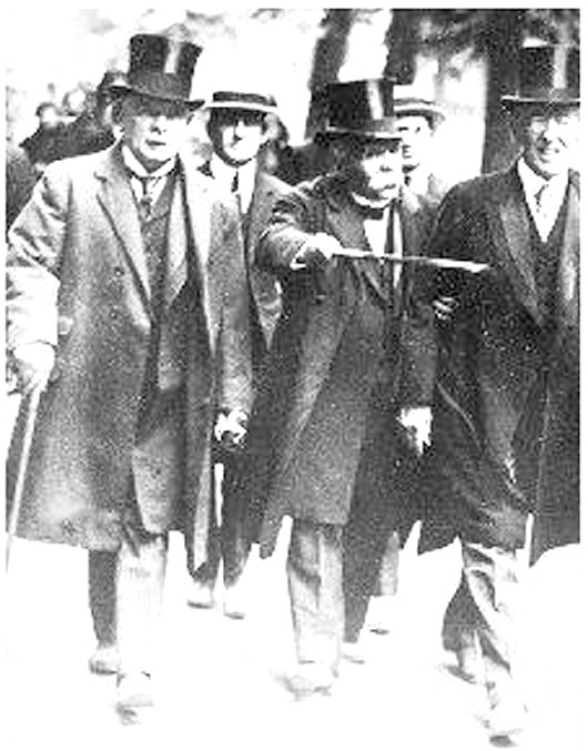 1919年巴黎和会召开期间,美国总统威尔逊(右一)和英国首相劳和·乔治(左一)和法国总理克里孟梭在一起。