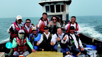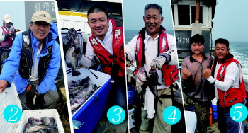 在盘点战利时,海洋勇士都对小田船长的服务感到满意。70后船长田忠,今年已过40岁,虽然年轻,但海上行船经验十分丰富,驾船又快又稳,找钓点精准,上鱼率高,是蓬莱海上钓船多产船之一。眼下,乘他的船出海海钓,要提前预约,拨打13616452689可约定海钓船期。图⑤中,为本版主编王宗一(右)与船长田忠(左)在海钓船上的合影。