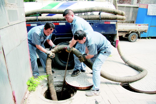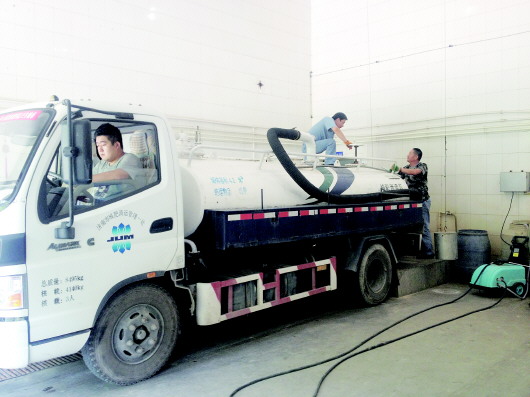 城肥二处工作人员正在用清运车抽取化粪池内的便便。 本报记者 王小蒙 摄