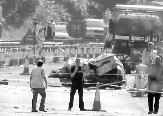 ▲22日,紧急救援人员和事故调查人员在英国东南部西萨塞克斯郡的坠机现场忙碌着。 新华/路透