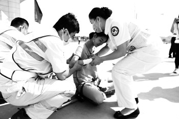 一架飞机下降时发现前起落架故障,需迫降济宁曲阜机场请求支援……这紧张的一幕发生在21日上午,济宁市举行的突发航空事故应急救援综合演练过程中。据悉,每3年必须进行一次突发航空事故应急救援演练,这是济宁曲阜机场自开航以来进行的第二次综合演练。 本报记者 黄广华 庄子帆 通讯员 韩广清 孙本涛 摄