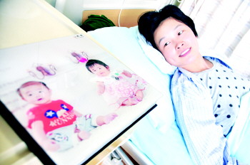 张稳正在病床上静养。她的病情进入化疗阶段。本报记者 张晓科 摄
