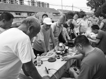 23日早上8点,本报进社区活动在北皂社区居委会门口开始。7点钟就已经有居民从开发区赶来等待维修家电了。而且北皂社区居民家电维修需求多,很快号码已经发到18号,仍有不少居民陆续赶来。