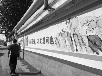 眼下,聊城正在进行国家卫生城市复审迎检当中,城区背街小巷整治也是尤为重要的一环。图为整治后的益民胡同墙体文化长廊让人眼前一亮,附近居民对此也赞誉有加。