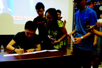 8月23日下午,相声演员李菁携相声剧《北京一夜ATM黑匣子》在德州大剧院举行新闻发布会暨粉丝见面会,现场与市民互动、签售,为9月11日在德州上演造势。 本报记者 李榕 通讯员 路倩 摄影报道