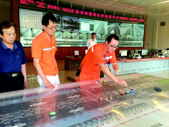 胶州湾隧道工作人员进行桌面应急演练。蓝娜娜 摄