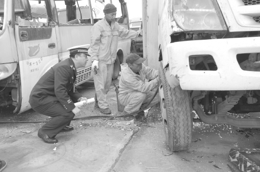◥车管所民警监督黄标车现场拆解报废。本报记者 张泰来 摄(资料片)